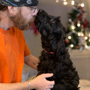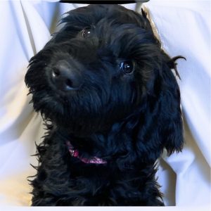 This sweet girl 💕 Bindi above is a very social and loving girl. She is four months old out of Sweetie’s Bundle of B’s. Bindi is 4 months old and should get around 40 to 45 pounds full grown. She has a gorgeous soft, shiny black wavy fleece coat, is potty trained using a doggy door and knows how to politely sit for a treat. Bindi loves to snuggle and give kisses! She’s also very playful! Bindi is ready to go home now and we are willing to hold her till after the holidays if needed. If you are interested in this sweet snuggle bug call Pat at 765-993-3218..