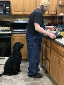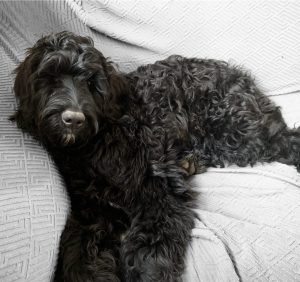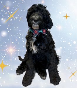 Banjo is very playful and loves to play fetch and he brings it right back to your hand. He loves toys and many times will walk around the house with a toy in his mouth. Banjo is 5 months old out of Sweetie’s Bundle of B’s. We think he will probably get around 45 to 50 lbs and has a loose curly fleece/wool coat. Banjo is 5 months old and is potty trained using a doggie door and can sit politely for treats. If you would like more info on making this goofy, funny, sweet boy, a member of your family call Pat at 765-993-3218.