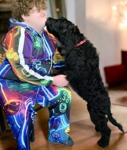 He is not a big kisser, but loves to snuggle so if you’re someone that doesn’t like your face kissed but love to have him snuggle with you this is the boy for you!